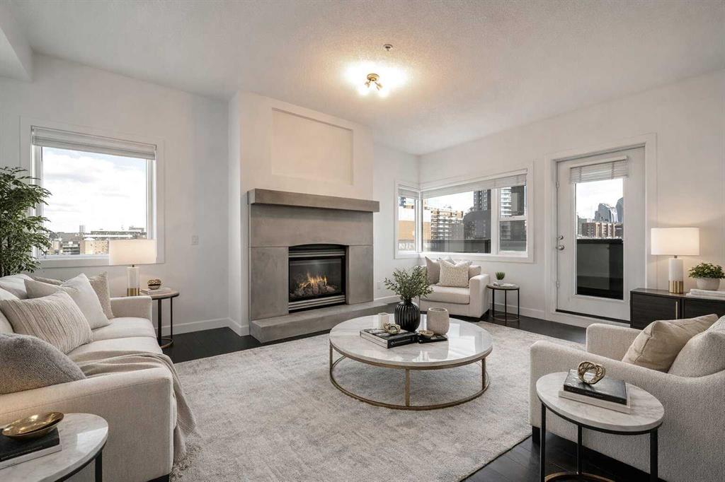 Incredible value in this stylish, urban chic, two bedroom condo, perfectly located in Lower Mount Royal! This lovely unit offers a bright, open plan, completely refreshed in a neutral palette and complimented by contemporary finishings throughout. The kitchen provides a sophisticated, yet functional vibe and includes granite counters, stainless appliances, large pantry and opens to a comfortable living/dining room with striking, concrete gas fireplace. The master bedroom comes complete with a large 4 piece ensuite bath and walk-in closet. The second bedroom is located on the opposite side of the unit, providing privacy and ease of access to main bath. Enjoy a spacious, NE facing balcony with spectacular downtown views, convenient in-suite laundry, luxurious in-floor heating, a huge, designated storage locker and one titled, underground parking stall. Inner city living at its best! Just steps to shopping, restaurants, transit and quick walk to the downtown. Welcome home! MLS®: A2287891 - Lower Mount Royal Apartment-Single Level Unit $345,000